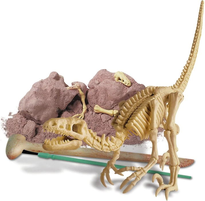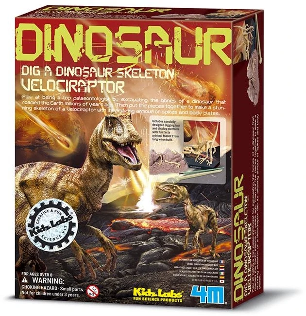4M KidzLabs: GRAAF-JE-DINOSAURUS-OP (Velociraptor), skeletbouwset in een blok Plaaster, doos 17x22x6cm, 8+