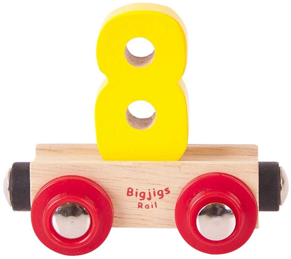 BigJigs Rail Name Number 8 , Nummernwagen 8{#}{#}Es gibt jetzt auch Nummernzüge von der Marke Big Jigs! Es macht Spaß, sie mit den Buchstaben des Namenszuges zu kombinieren, aber auch ein Zug von 0 bis 9 ist ein Riesenspaß für Kinder. {#}Es ist ein Zug, der nicht nur dekorativ Spaß macht, sondern viel mehr bietet. {#}{#}Dieser Zug passt zum Beispiel auf jede normale Holzeisenbahnschiene und kann daher als Spielzeugeisenbahn verwendet werden{#}Die kleinen Waggons werden mit Magneten aneinander befestigt und sind für Kinder viel einfacher zu lösen und wieder zusammenzusetzen als Waggons mit Haken{#}{#}Die Zahlen sind nicht am Fahrgestell befestigt, sondern mit einem Holzpflock. Auf diese Weise kann man die Figuren separat verwenden, um Zahlen (über 9) zu bilden oder andere Spiele zu spielen. {#}Zudem ist es eine Übung für die Feinmotorik, die Figuren wieder auf die Waggons zu setzen.{#}Für Eltern, die Angst haben, dass die Figuren kaputt gehen könnten: Die Figuren sind recht dick und können weggelegt werden, wenn das Kind mit dem Zug spielt{#} {#}Sie haben sie wahrscheinlich schon einmal gesehen: Buchstabenzüge. Sie werden u. a. zu Geburten, Geburtstagen und Taufen verschenkt. {#}{#}Die Buchstabenzüge von BigJigs passen auch mühelos auf die BigJigs-Schiene.{#}{#}Die Züge sind mit einem Magneten ausgestattet und lassen sich daher ganz einfach verbinden. {#}{#}Es ist üblich, diese BigJigs Lokomotive und Wagen auch mit einem Buchstabensatz zu nehmen.{#}{#}{#}{#}Größen: 7x3x6 cm{#}{#}{#}{#}{#}Material: Holz mit Magneten in verschiedenen Farben{#}{#}{#}{#}CAUTION: Es gibt verschiedene Farben{#}{#}{#}Altersempfehlung: Ab 3 Jahren{#}Gruppe: Jungen und Mädchen{#}Marke: Bigjigs