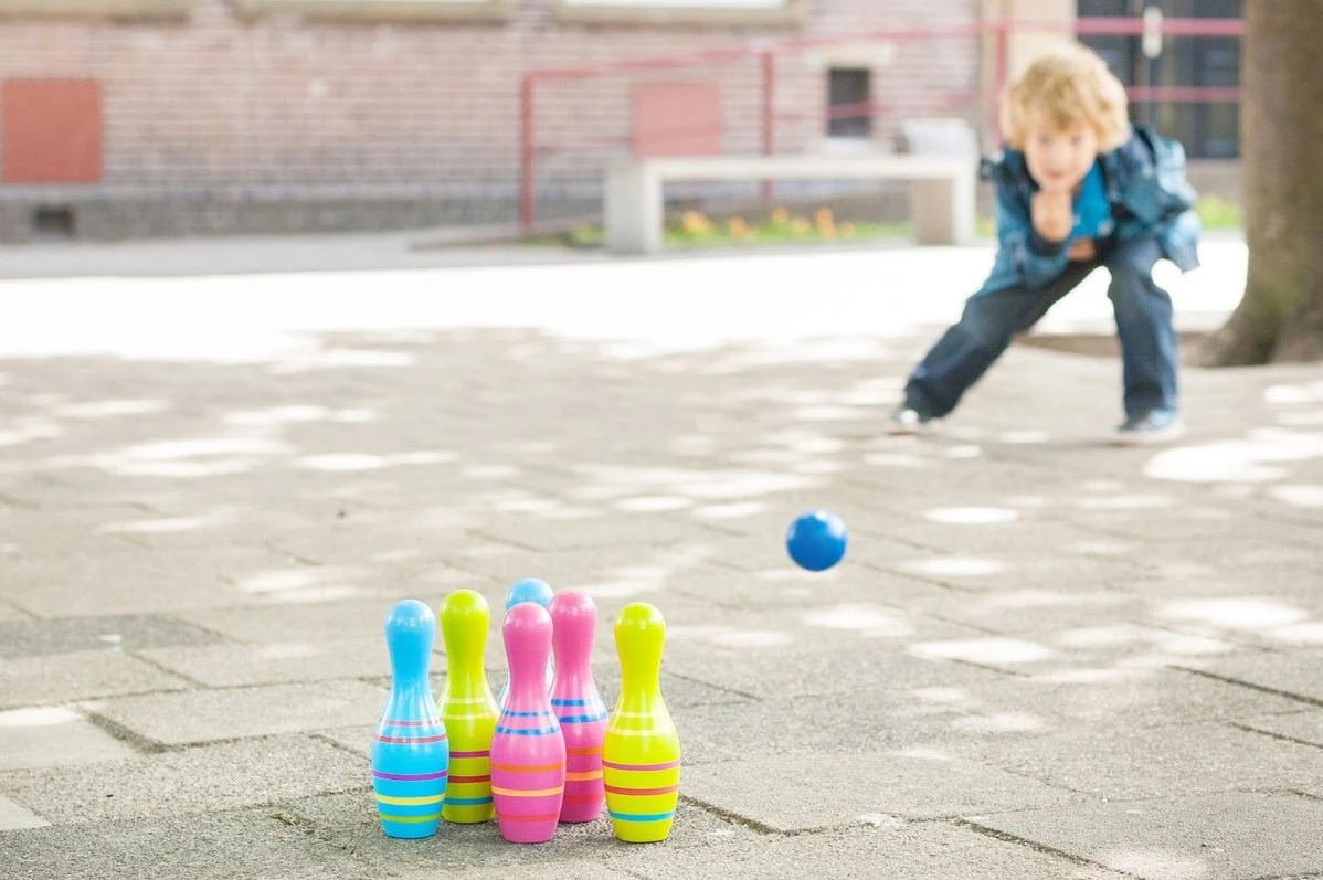 Jeder Spieler spielt ein Bälle und jeder umgeworfene Kegel liefert einen Punkt. Ein Spiel