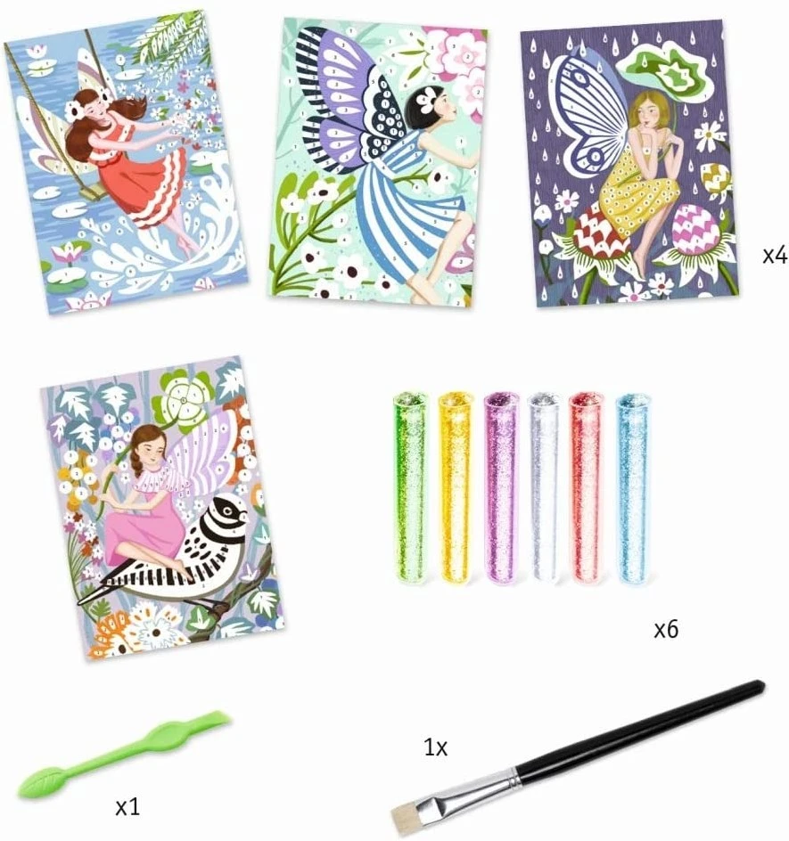 Djeco DJ09516 Cuadros purpurina La dulzura de las hadas Formen und Farben