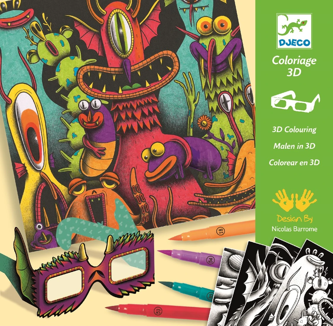 Djeco Kreativ Set Funny Freaks Malset Mit 3D Brille Ab 7 Jahren