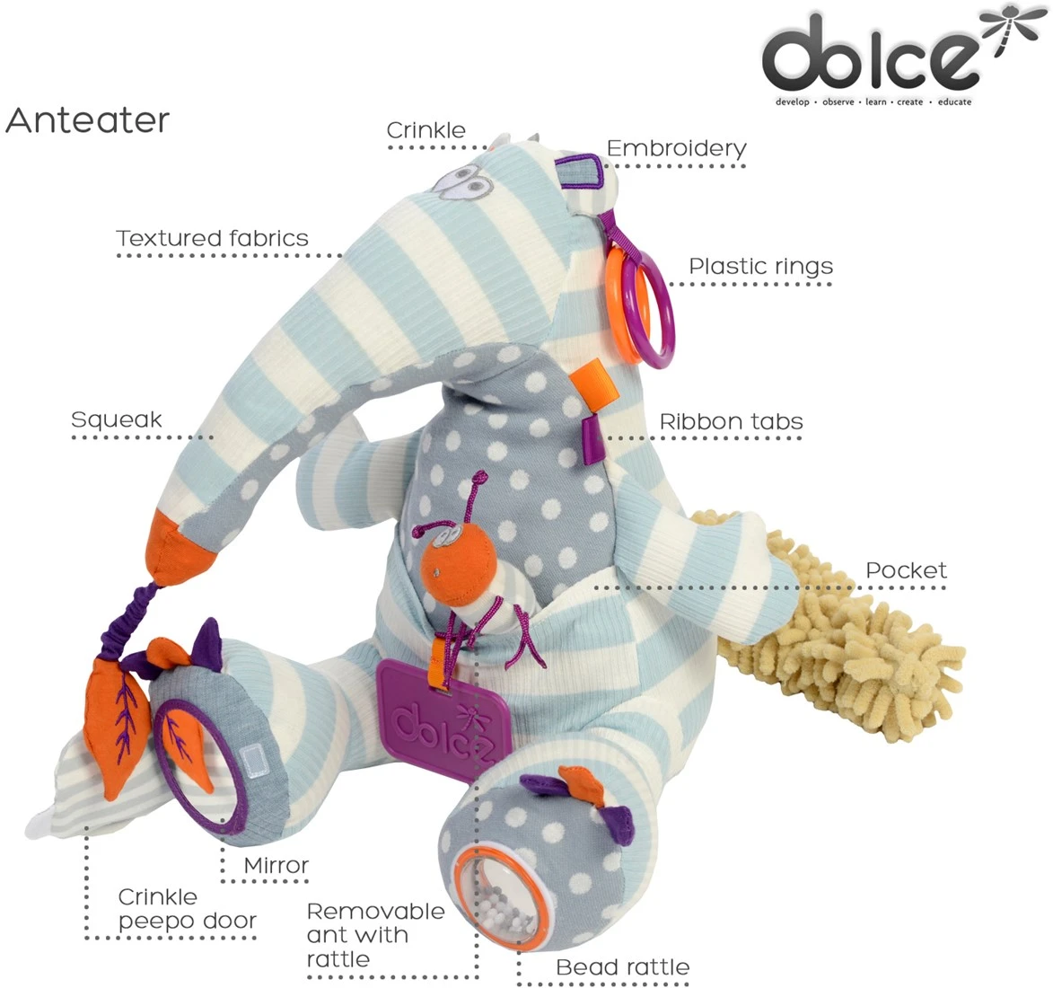 Dolce Primo Aktivitätsspielzeug Ameisenbär Anthony – 33 cm
