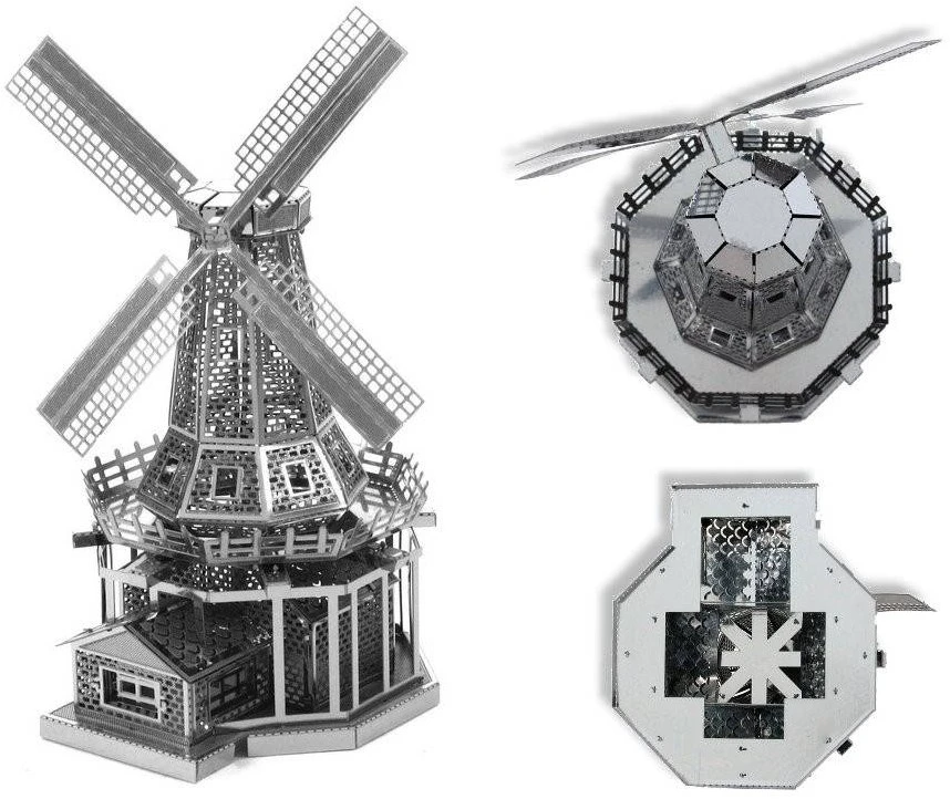 Fascinations MMS038 – Metal Earth 502570 – Windmill, lasergeschnittener 3D-Konstruktionsbausatz, 2 Metallplatinen, ab 14 Jahren