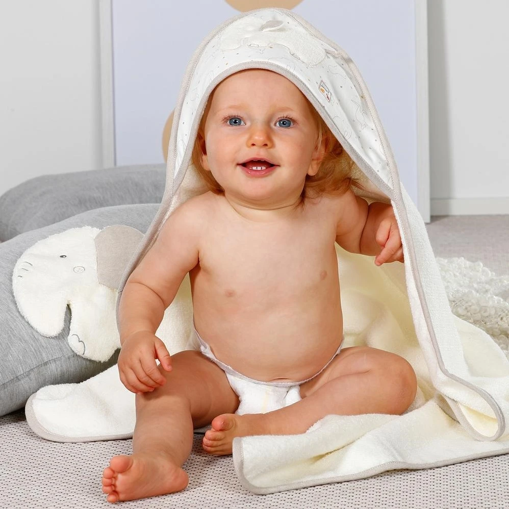 Fehn 071283 Kapuzenbadetuch Sleeping Forest – Bade-Poncho aus Baumwolle mit süßem Fuchs für Babys und Kleinkinder ab 0+ Monaten – Maße: 80 x 80 cm