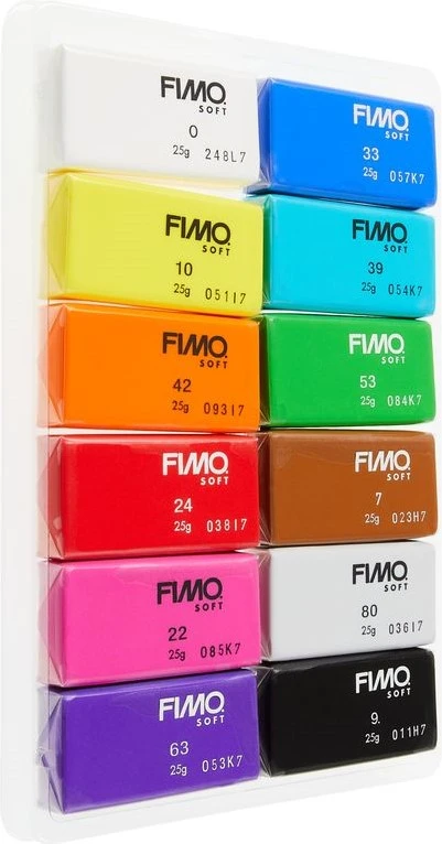 FIMO soft ofenhärtende Modelliermasse. Kartonetui mit 12 sortierten Basic-Farben.