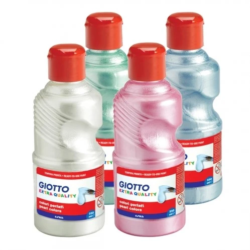 Giotto Gouache Perlmutt-Sortiment 4 Flaschen 250 ml (weiß, magenta, hellgrün, cyan), F40012