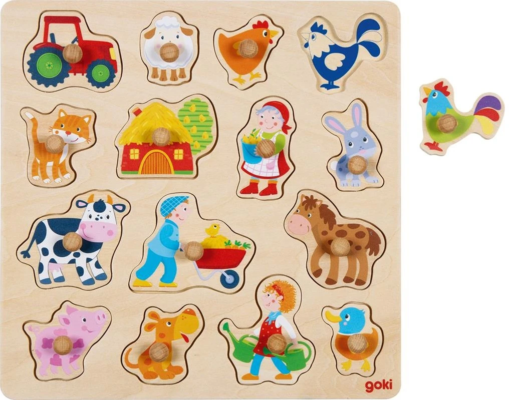 Goki Holzknopfpuzzle Bauernhof – 15 Teile