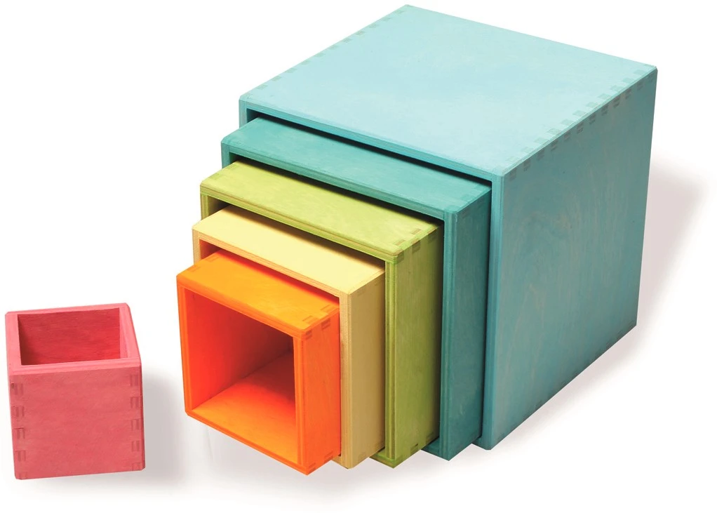 Der große Kistensatz bietet vielseitige Spielmöglichkeiten und ist praktisch: Für die ganz Kleinen schon zum stapeln, bauen, sortieren und sammeln, für Größere als Häuschen für kleine Püppchen, Garage für Autos und vieles mehr. Und natürlich sind die farbigen Boxen auch zum Aufbewahren und Ordnen auf dem Schreibtisch wunderbar geeignet.