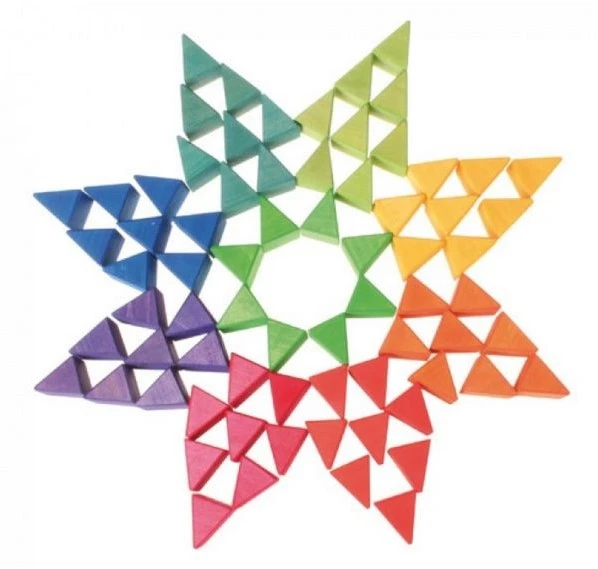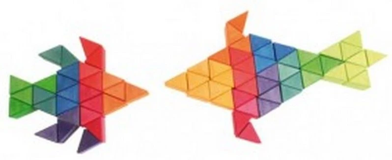 Erforschen was die Dreiecksform zu bieten hat: Vom kleinen zum großen Dreieck, vom Sechseck zum Sechstern – welche geometrischen Formen lassen sich noch mit den gleichschenkligen Dreiecken legen?
