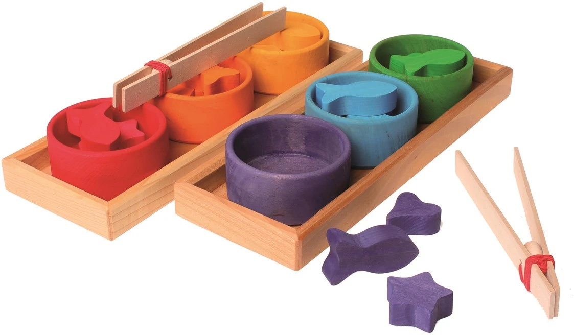 Für die Älteren Kinder ab 3+ ist es eine Herausforderung mit der Pinzette die einzelnen Teile zu greifen und zu sortieren.