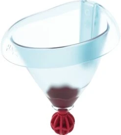Kuller, kuller, plitsch, platsch: Der Wasserball kullert durch die Bahnen, plumpst in den Wipp-Eimer hinein und wieder heraus und dreht sich rasant im Schaufelrad. Zum Schluss landet er sanft im großen Trichter. Der kann nicht nur fleißig über die Schöpfkelle befüllt, sondern auch schnell wieder geleert werden: Einmal kurz das Ventil hochdrücken und „plopp“ fließt das Wasser heraus!