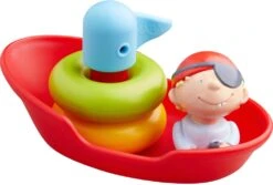 HABA Steckspiel Boot. Achtung, fertig machen zum Entern! Dank farbenfroher Steckringe sorgt dieses Piratenboot für Abwechslung und maximalen Steckspaß in der Badewanne oder dem Planschbecken.