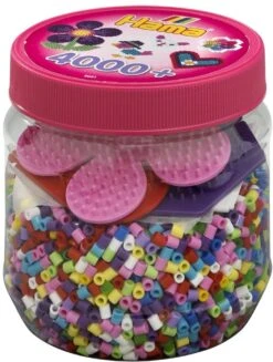 Hama Perlen 2051 Bügelperlen Dose Mit Ca. 4.000 Bunten Midi Bastelperlen Mit Durchmesser 5 Mm Im Farben Mix Und 3 Stiftplatten, Kreativer Bastelspaß Für Groß Und Klein