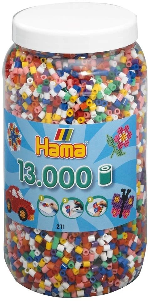 Hama Perlen 211-00 Bügelperlen XXL Dose Mit Ca. 13.000 Bunten Midi Bastelperlen Mit Durchmesser 5 Mm Im 10 Farben Mix, Kreativer Bastelspaß Für Groß Und Klein
