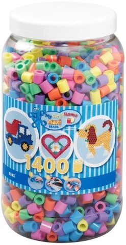 Hama Perlen 8541 Bügelperlen Dose Mit Ca. 1.400 Bunten Maxi Bastelperlen Mit Durchmesser 10 Mm Im Pastellmix, Kreativer Bastelspaß Für Groß Und Klein