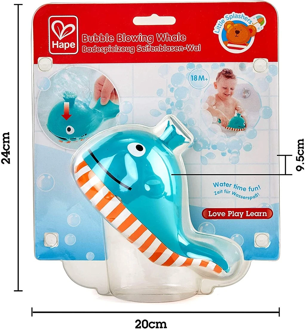 Hape Badespielzeug Seifenblasen-Wal I Baby-Badewannenspielzeug, Blau