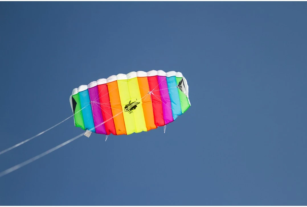 Preiswerte Lenkmatte für den Einsteiger. Geringe Zugkräfte und gutmütiges Flugverhalten. Exzellentes Preis-Leistungs-Verhältnis. Ready to fly, inklusive Leinen und Griffen.