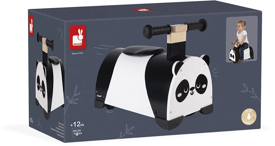Janod – Aufsitzspielzeug aus Holz Panda – Multidirektional 360 ° – Entwicklung der Balance – Inkl. Aufbewahrungsfach Ab 1 Jahr, J08052
