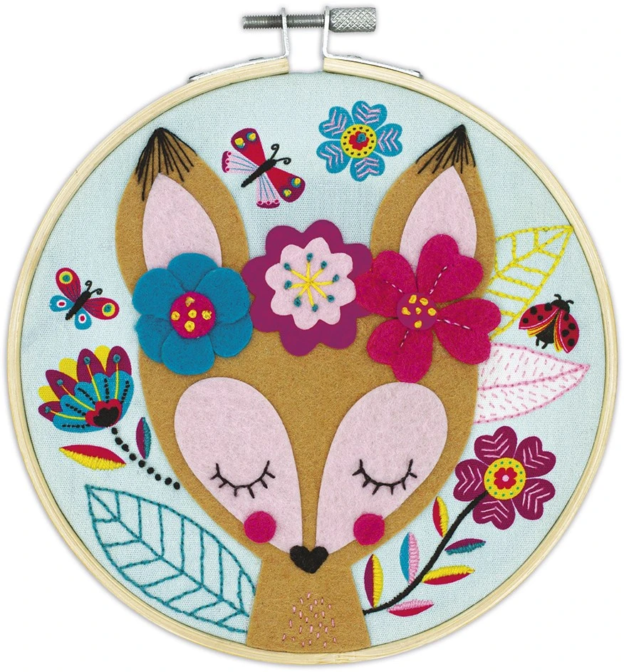 Janod J07924 Rehkitz „Stickerei“-Set mit Trommel und Filz-Les Ateliers Déco-Kreative Freizeitbeschäftigungen für Kinder-Entwicklung von Feinmotorik und Konzentration-Ab 8 Jahren