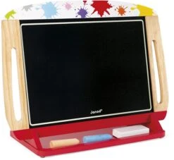 Janod J09633 Beidseitig nutzbare Tischtafel aus Holz Splash-Große Fläche-Magnetisches Whiteboard + Schiefertafel für Kreide-4 Zubehör enthalten-Ab 3 Jahren