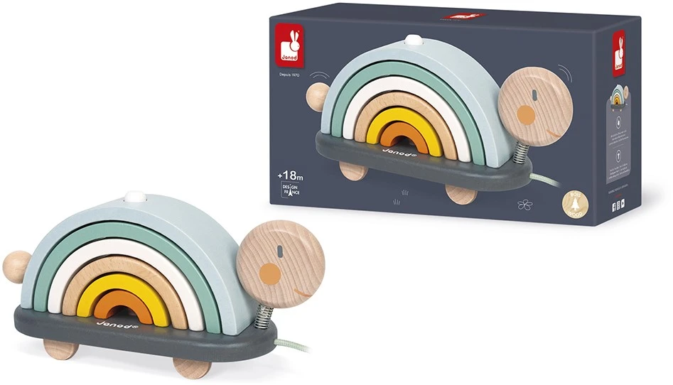 Janod – Sweet Cocoon Nachziehtier Schildkröte “Regenbogen” – Lernspielzeug aus Holz – 6 Stapelbare Holzbögen – Holzspielzeug mit Farben auf Wasserbasis – Nachziehspielzeug – Ab 18 Monaten, J04405