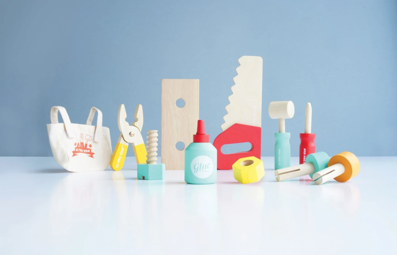 Le Toy Van – Pädagogisches Autos & Baustelle-Spielset aus Holz Werkzeugkiste für Rollenspiel | Für Mädchen & Jungen Holzwerkzeuge-Rollenspiel – Geeignet für Kinder ab 3 Jahren