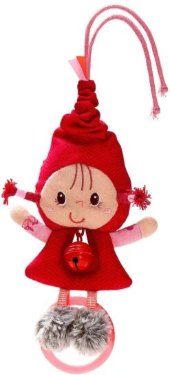 Rotkäppchen hat heute den Schalk im Nacken. Häng sie so auf, dass das Baby sie erreichen kann, und sie macht sich erst gaaanz lang und zieht sich dann schnell wieder mit viel Gebimmel zusammen!