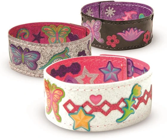 Melissa & Doug Kreiere Deine Eigenen Armbänder. Dieses Modeaktivitätenset und Armbandbastelkit macht es den Kids leicht, Zubehör zum Tragen und Verteilen an andere zu machen! Das Set enthält vier Kinderarmbänder mit einer anderen schimmernden Farbe auf jeder der beiden Seiten. Nimm die zugehörigen Funkelstein- und Glitzersticker, um jedes mit Blumen, Herzen, Schmetterlingen, Sternen, Schleifen und Kringeln zu verzieren. Mache dir einige hübsche Armbänder; schließe dann die Verschlusslasche an einem deiner Lieblingsarmbänder und trage dieses — oder auch gleich mehrere, um zu zeigen, dass dein Modebewusstsein von hoher Klasse ist!