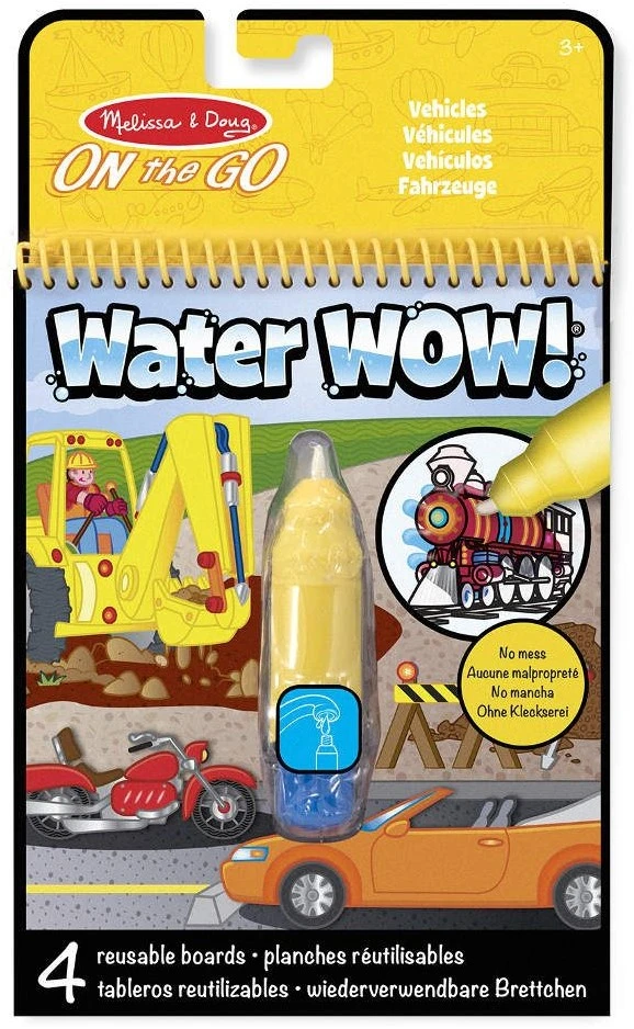 Melissa & Doug Malblock – Enthüllung Mit Wasser – Fahrzeuge. Malen für Kids ohne Kleckserei! Dieses faszinierende Mal-mit-Wasser-Malbuch enthält vier wiederverwendbare Seiten und einen nachfüllbaren Wasserstift Fülle deinen Stift einfach mit Wasser und male jede Szene aus; bei jedem Strich erscheinen tolle Details und prachtvolle Farben! Wenn du die Seite trocknen lässt, verschwinden die Bilder, und du kannst sie immer wieder ausmalen. Diese Malbuch mit Fahrzeugmotiven enthält vier Szenen zum Ausmalen sowie eine Suche-und-Finde-Aktivität zu jeder Szene. Die Kids können den kompakten Wasserstift, der seinen eigenen Platz im Deckel hat, leicht festhalten. Water Wow!-Bücher sind daher eine ideale Beschäftigung für Kinder zu Hause und auf Reisen!