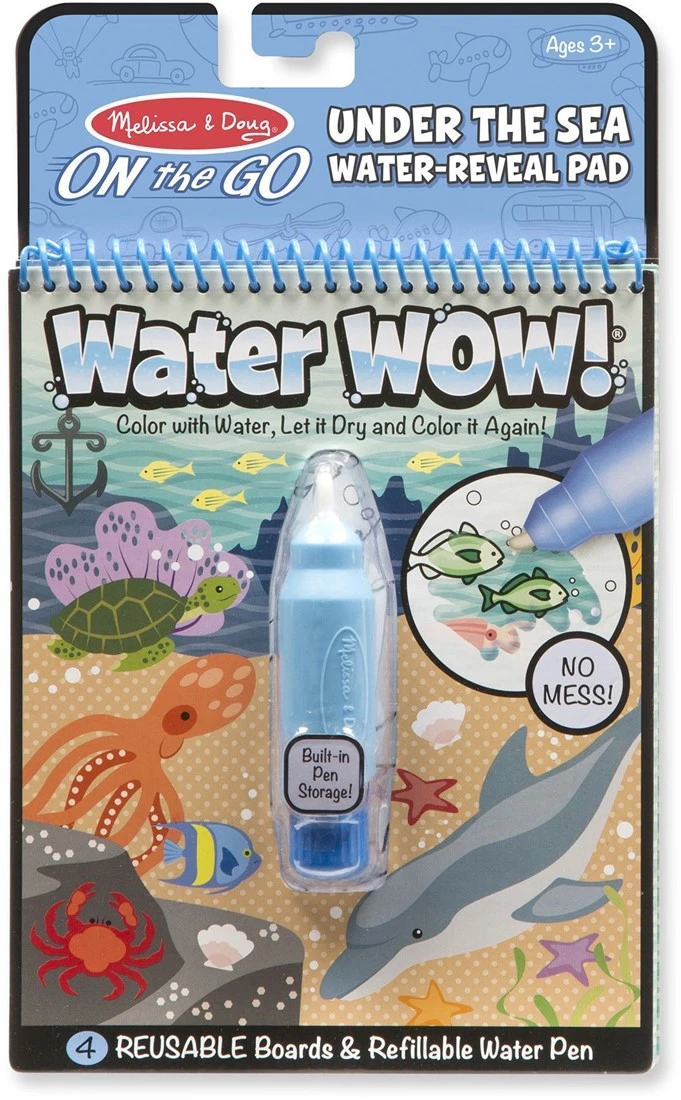Melissa & Doug Malblock – Enthüllung Mit Wasser – Wassertiere. Malen für Kinder ohne Unordnung! Diese aufregende Malbuch, um mit Wasser zu malen, hat vier wiederverwendbare Seiten und einen auffüllbaren Wasserstift. Einfach den Stift benutzen, um jede Szene auszumalen – Einzelheiten und lebendige Farben tauchen bei jedem Strich auf! Lasse die Seite dann trocknen, um die Bilder zu löschen und fülle sie immer wieder auf ein Neues aus. Das Buch mit der Unterwasser-Thematik hat vier Szenen zum Ausmalen und ein Such-und-Finde Spiel für jedes Bild. Der dicke Wasserstift liegt den Kindern gut in der Hand und wird direkt neben dem Cover aufbewahrt. Water WOW! Bücher sind für Kinder ideale Spielbücher für Reisen und Spielzeug für unterwegs.