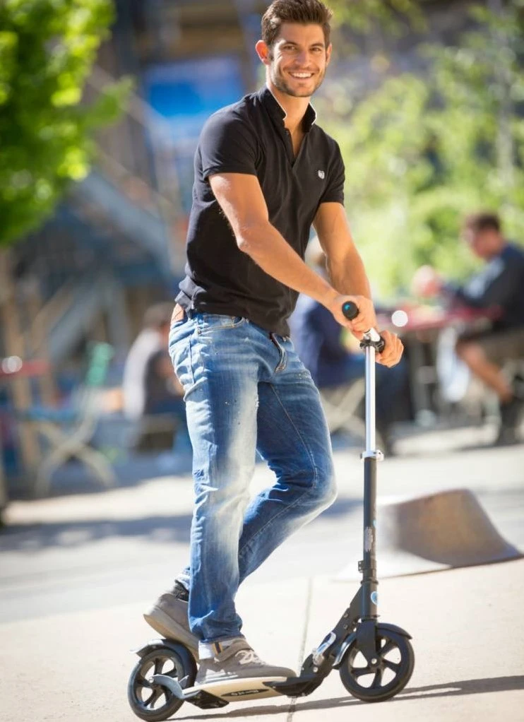 Du hast einen Ausflug ins Grüne geplant, willst aber nicht auf deinen Micro Scooter verzichten? Kein Problem, dafür haben wir den Micro Scooter Flex Air entwickelt! Mit seinen 200 mm grossen Luftreifen glättest du jeden Kieselweg und gleitest gekonnt über den rauen Pflasterstein der Altstadt. Das beliebte Trittbrett aus Holz und Fiberglas sorgt dabei für zusätzlichen Komfort und fängt Schläge und Unebenheiten gekonnt ab. Der ideale Scooter für entspannte Geländefahrten. Falls du jedoch vorwiegend auf Asphalt unterwegs bist, empfehlen wir dir einen Scooter mit PU Rollen, zum Beispiel den Micro Scooter Black oder White.