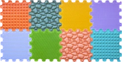 Maak kennis met ORTOTO’s set voor de allerkleinsten! Een heel zacht spoor voor de eerste stapjes van de baby. Set ORTOTO „First Steps“ bevat structuren die de favoriete plekken voor wandelingen in de natuur nabootsen – zacht gras en de rotskust. Zachte en aangename texturen masseren zachtjes de voeten, verbeteren de bloedcirculatie, stimuleren de zenuwuiteinden, versterken de spieren en voorkomen platvoeten.