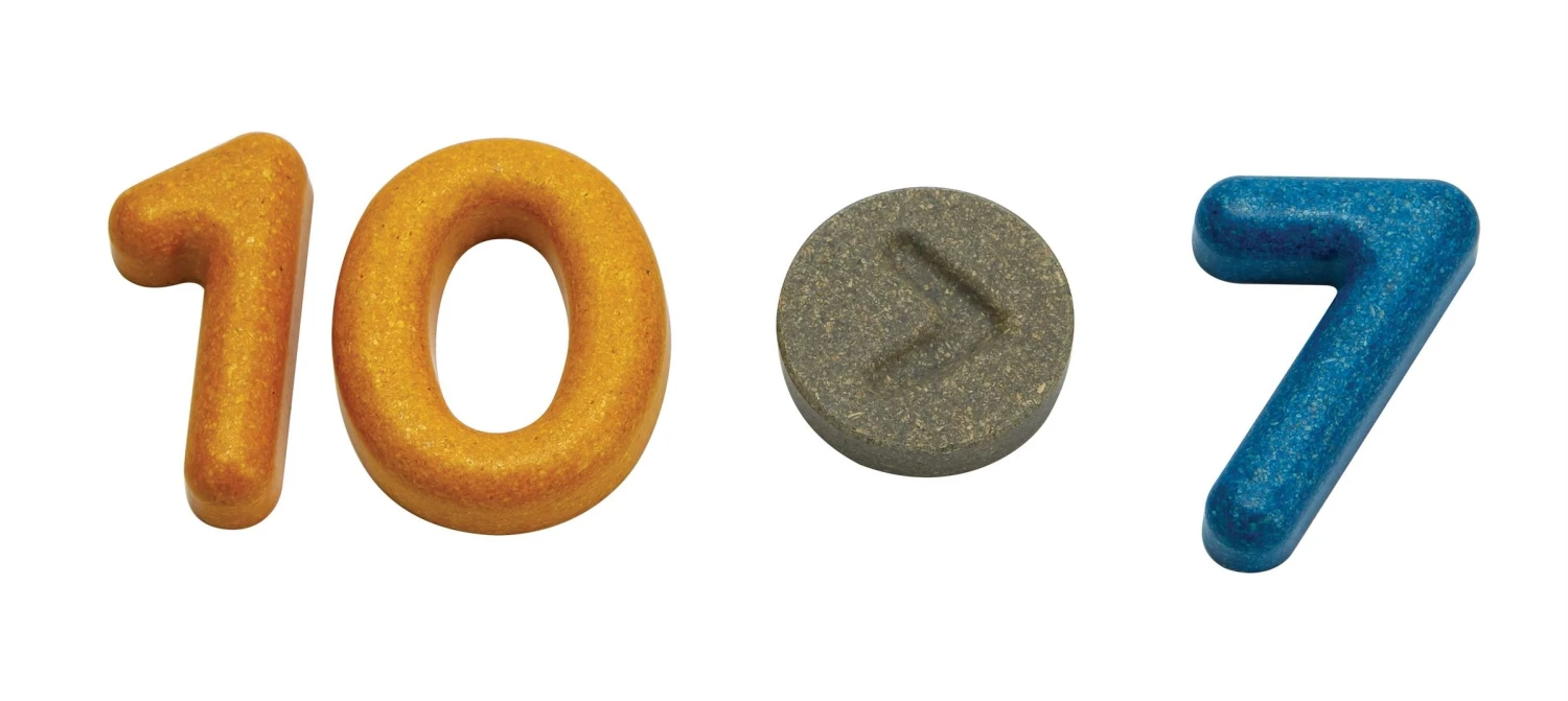 Mathe kann Spaß machen! Mit den Zahlen und Symbolen können Kinder Addieren, Subtrahieren, Multiplizieren, Dividieren und vieles mehr üben. Das Set enthält nummerierte Plättchen von 1-10, die in gerade und ungerade Farben unterteilt sind. Drei 2-seitige Spielsteine mit mathematischen Symbolen sind ebenfalls enthalten. Hier finden Sie eine druckbare Spielkarte zur Ansicht oder zum Herunterladen online. Empfohlenes Alter: Ab 2 Jahren.