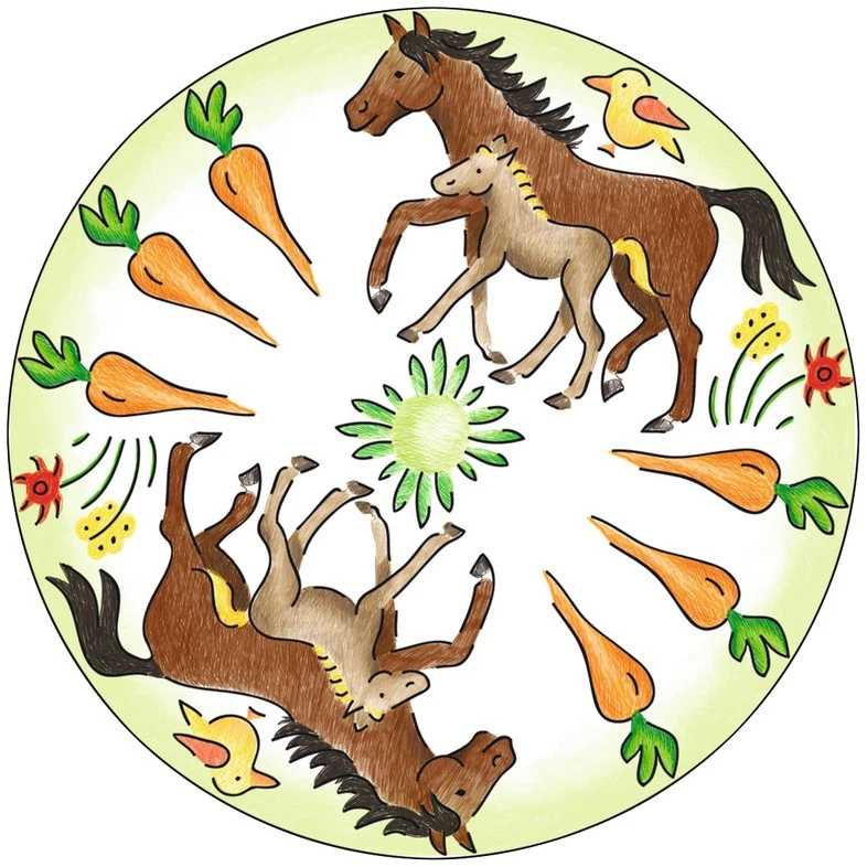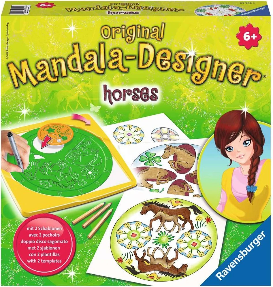 Ganz einfach Zeichnen lernen und dabei zum echten Künstler werden. Am Ende noch mit den Lieblingsfarben die schönen 2in1 Mandala-Designer Horses Motive ausmalen. Das gesamte Set enthält 1x Malrahmen, 1x große Mandala-Schablone, 1x kleine Mandala-Schablone, 10x Bogen Papier, 1x Filzstift, 3x Buntstifte.