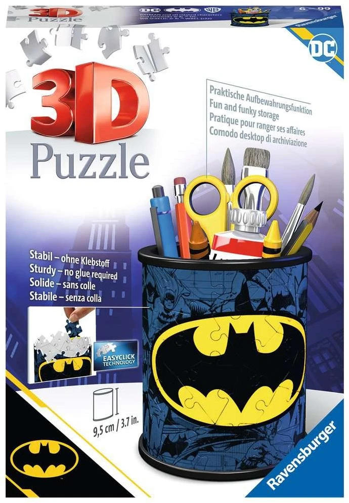 Ein 3D Puzzle, das nicht nur Puzzlespaß bietet, sondern auch gute Dienste leistet: Denn das Utensilo aus 54 nummerierten Kunststoff-Puzzleteilen kann anschließend zur praktischen Aufbewahrung genutzt werden – egal ob als Stiftebox, für kleine Schätze oder anderen Krims-Krams. Dank der bebilderten Anleitung und den Zahlen auf der Rückseite der gewölbten Puzzleteile ist das Puzzeln des Organizers kinderleicht. Auch erwachsene 3D Puzzle-Fans haben große Freude am Puzzeln dieses großartigen Dekoobjekts mit reichlich Platz für Utensilien aller Art.