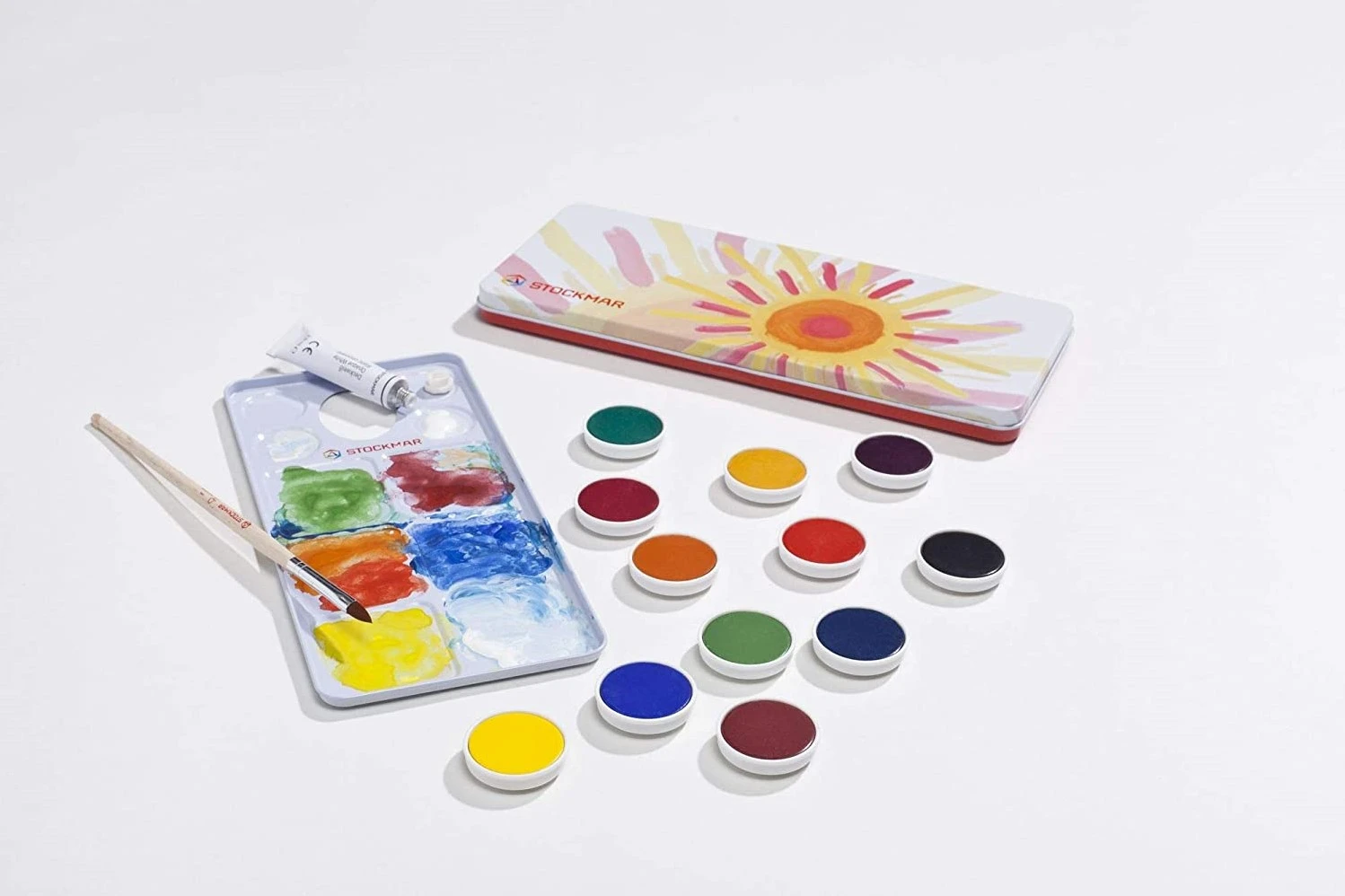 Stockmar Deckfarben – 12 Farben + Deckweiß + Pinsel + Mischpalette