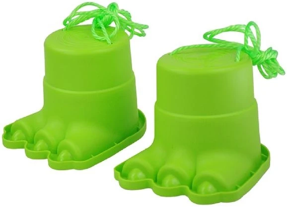 Lustige Lauf Klötze mit Dino Pfote. Gehe damit und hinterlasse die Pfotenabdruckeines Dinosauriers im Sand!